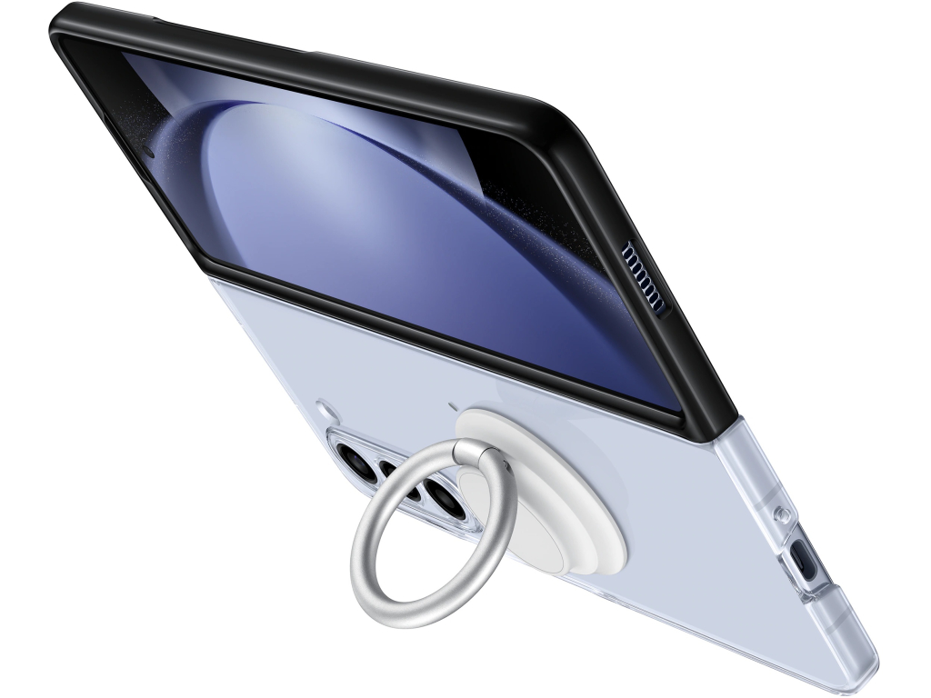 Ervaar verhoogde zekerheid wanneer je je Samsung Galaxy Z Fold5 vasthoudt met de Samsung Clear Gadget Case. Deze hoes is speciaal ontworpen voor een stevige grip, waardoor het risico op vallen en stoten aanzienlijk wordt verminderd. De grip fungeert ook als een handige standaard, perfect voor wanneer je je telefoon horizontaal wilt plaatsen voor een optimale kijkervaring.