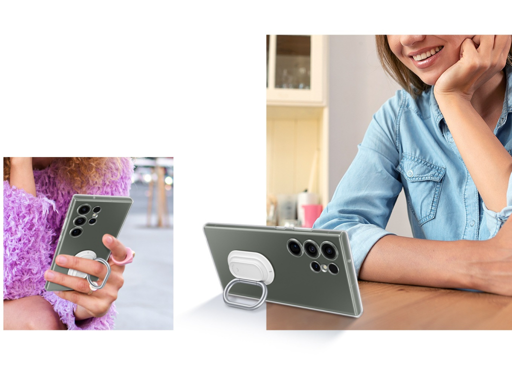 Met de EF-XS918CTEGWW Samsung Clear Gadget Case Galaxy S23 Ultra 5G Transparent haal je een multifunctionele case in huis voor jouw smartphone. De case is te combineren met diverse afneembare en uitwisselbare accessoires van allerlei verschillende merken. Standaard zitten de Grip en Cap accessoires in dit pakket. Met de Grip-accessoires heb je door de grote ring optimaal grip op je nieuwe toestel. Dezelfde ring kan je ook gebruiken als standaard om handsfree naar je favoriete content te kijken. Met de Cap-accessoire dek je het koppelingssysteem af wanneer je er geen gebruik van maakt. De transparante case is behandeld met een krasbestendige en anti-vergelende coating aan de binnen- en buitenkant.
