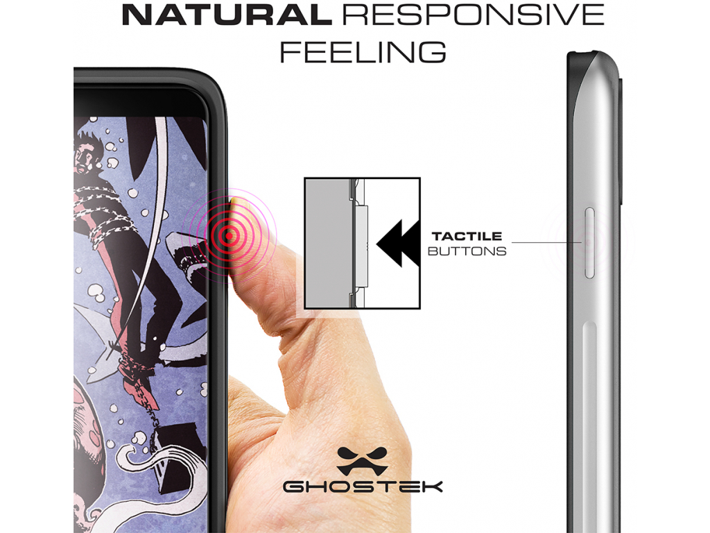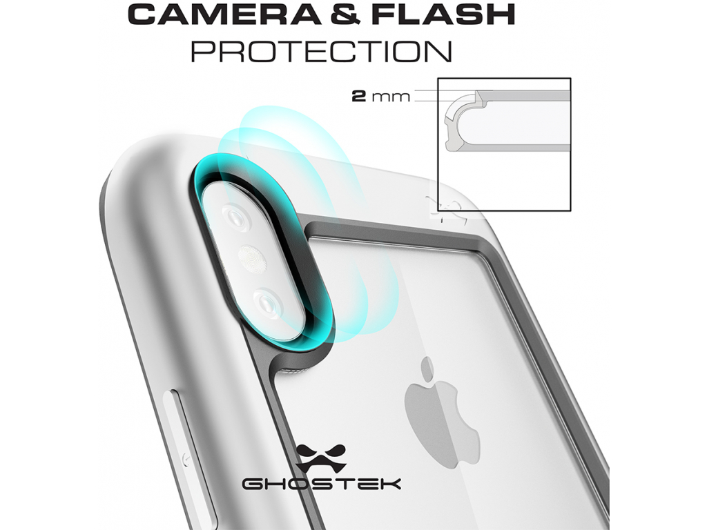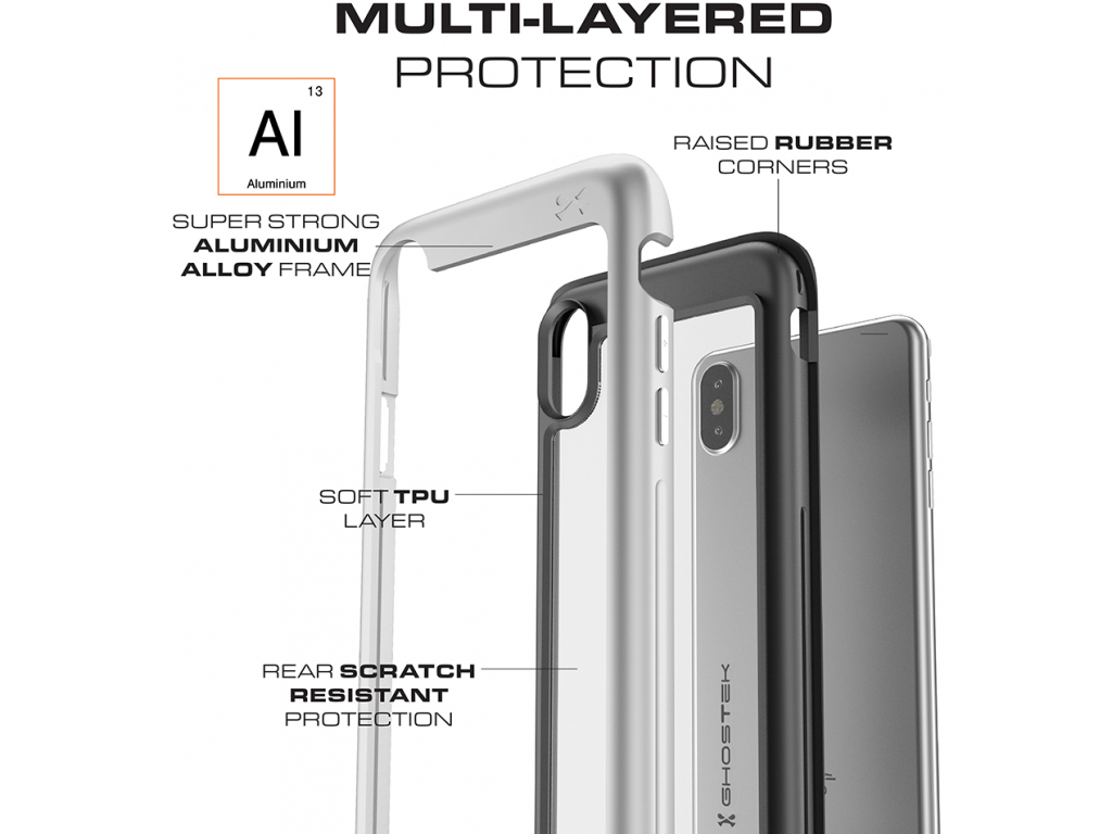 De Atomic slim van Ghostek is een moderne en stoere bescherming voor uw iPhone X. De combinatie van zacht TPU, rubber en een super sterk aluminium frame maken dat deze case erg goed schokken absorbeert. De knoppen van uw mobiel worden beschermd door knoppen in de case. Deze knoppen beïnvloeden niet de werking van de knoppen op uw toestel. Met de kleine opstaande randjes ligt uw toestel nooit meer plat op het scherm. Hierdoor blijft het scherm langer mooi en krasvrij. Een klein extra opstaand randje rond de camera van uw toestel geeft extra bescherming aan uw camera. Alle poorten en connectoren zijn toegankelijk.
