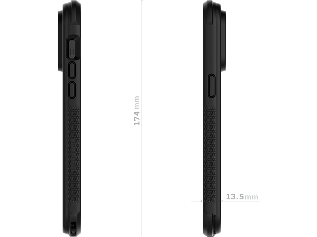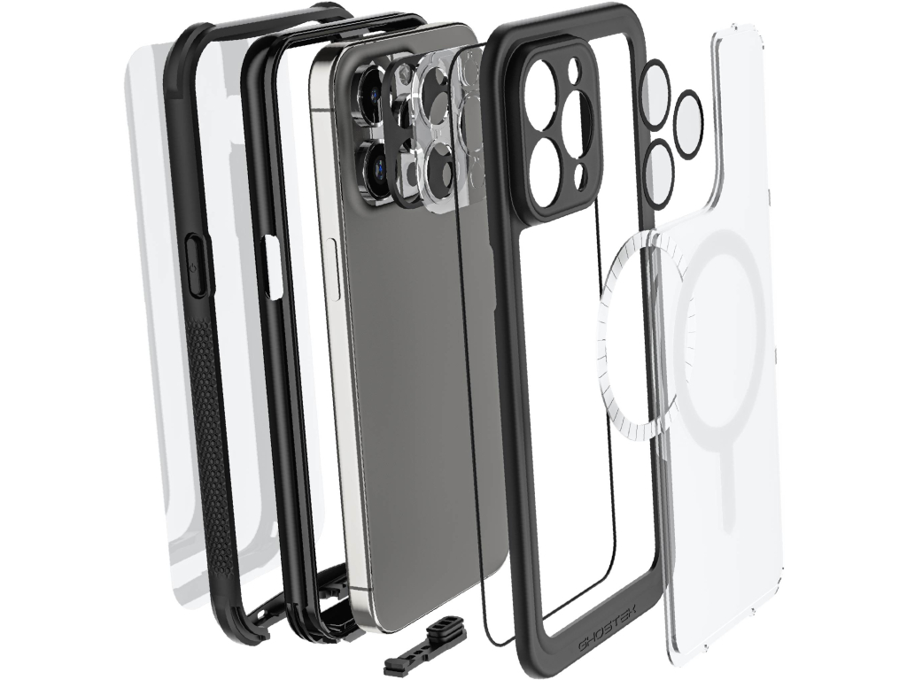 De case is compatible met het MagSafe ecosysteem van Apple en Wireless charging en wordt geleverd met een universeel draaibare riemclip.