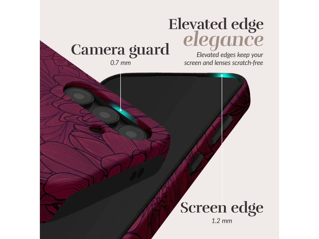 • Opstaande randen om je display te beschermen