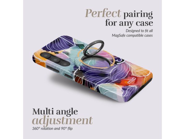 Met de krachtige MagSafe-compatibele magneten blijft de ringhouder stevig op zijn plek, zelfs bij intensief gebruik. Of je nu onderweg bent of thuis ontspant, je kunt erop vertrouwen dat je telefoon veilig bevestigd blijft.