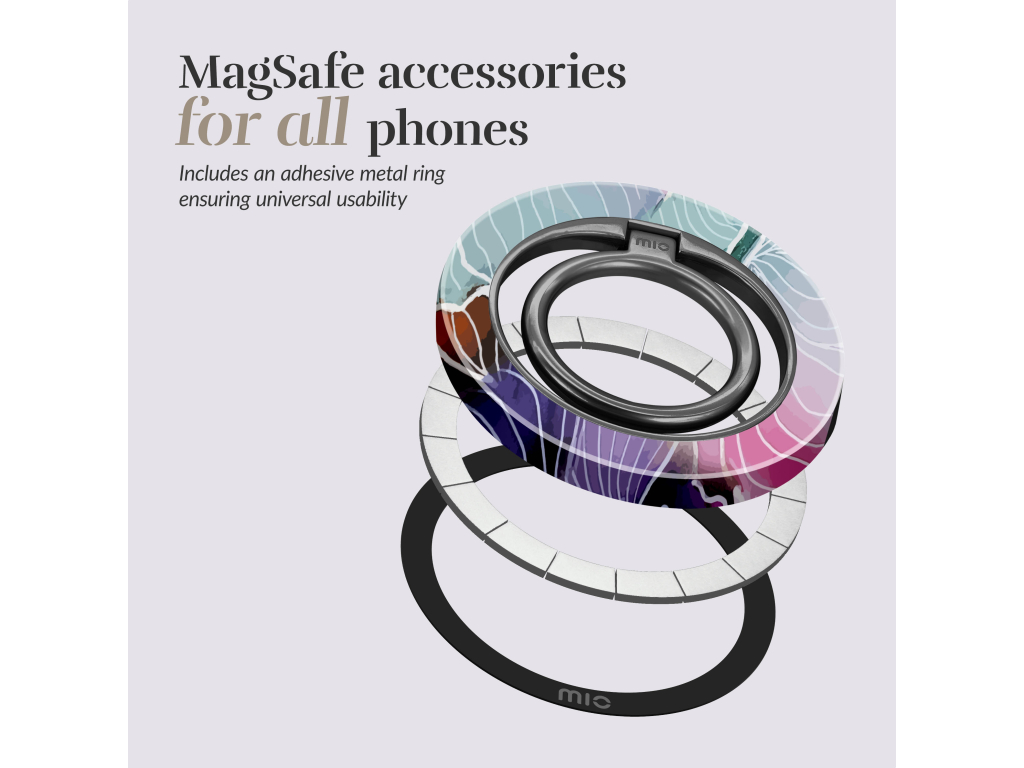 Met de MIO MagSafe Compatible Ring Holder geef je je telefoon niet alleen extra grip en functionaliteit, maar ook een stijlvolle touch die perfect bij je past. Maak van je smartphone een verlengstuk van je persoonlijke stijl met deze praktische en elegante accessoire! De ringhouder is ontworpen met dezelfde unieke patronen als de MIO-cases, waardoor je een naadloze stijl creëert die perfect aansluit bij je persoonlijke look.