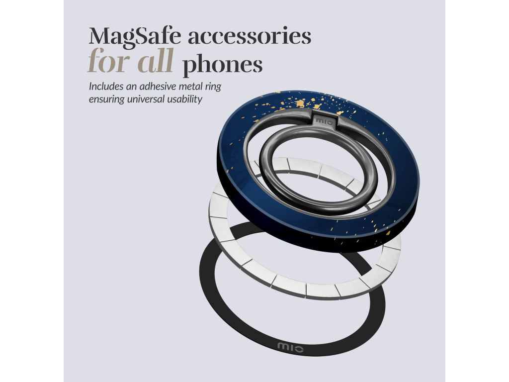 Met de MIO MagSafe Compatible Ring Holder geef je je telefoon niet alleen extra grip en functionaliteit, maar ook een stijlvolle touch die perfect bij je past. Maak van je smartphone een verlengstuk van je persoonlijke stijl met deze praktische en elegante accessoire! De ringhouder is ontworpen met dezelfde unieke patronen als de MIO-cases, waardoor je een naadloze stijl creëert die perfect aansluit bij je persoonlijke look.