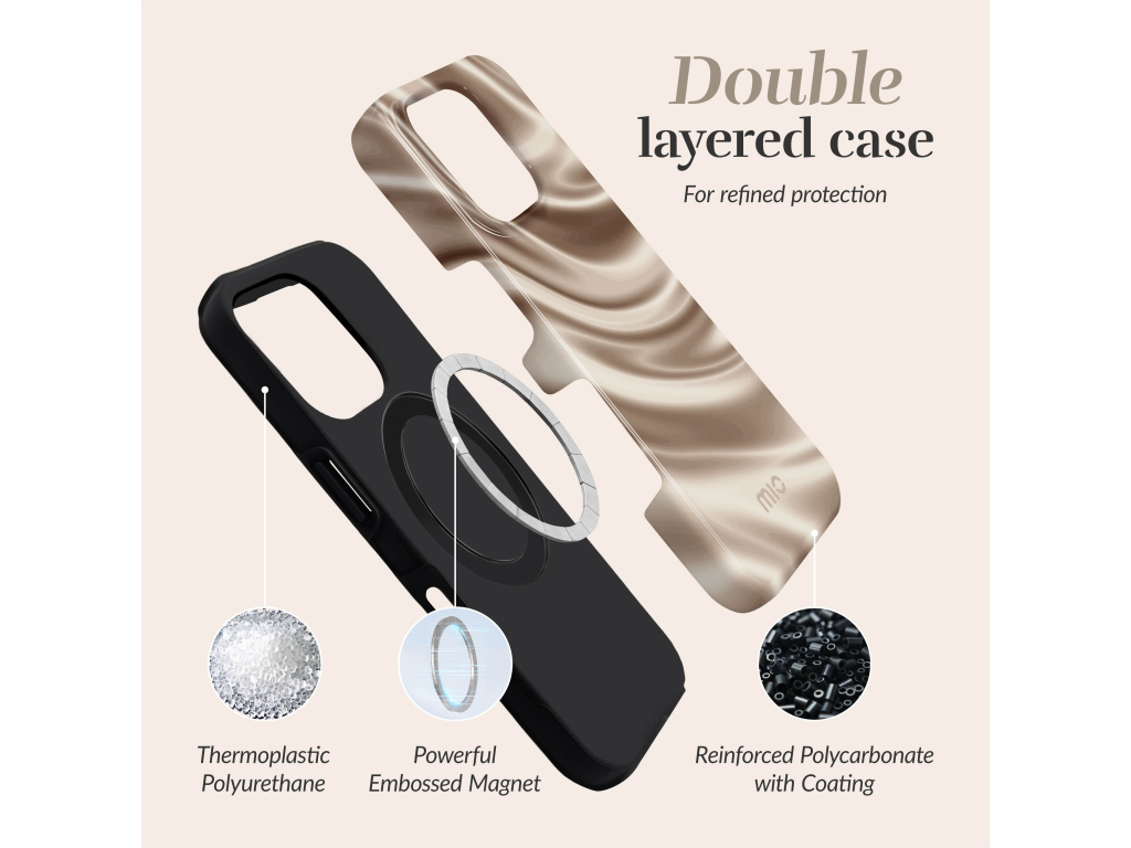 Mio Cases zijn niet zomaar gewone hoesjes, ze zijn een fashion statement voor je telefoon! Bestaande uit twee delen, een flexibel TPU voor schokabsorptie en een stevige schil van polycarbonaat voor maximale bescherming, bieden deze MagSafe-compatible cases je smartphone de ultieme bescherming tegen vallen. Met Mio's dropprotectie én de toegevoegde functionaliteit van MagSafe kun je met een gerust hart je dag beleven, wetende dat je telefoon veilig is, hoe druk of wild het soms ook wordt.