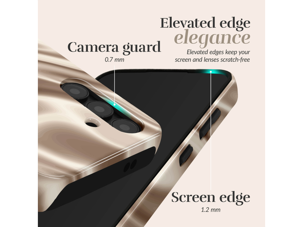 • Opstaande randen om je display te beschermen