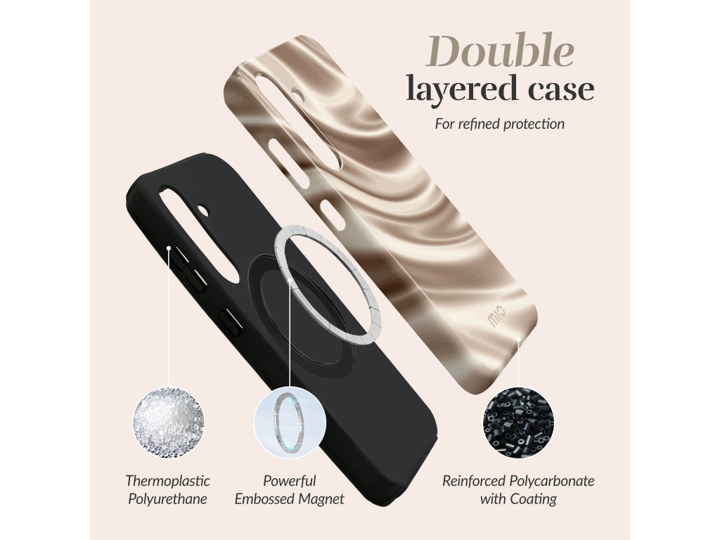 Mio Cases zijn niet zomaar gewone hoesjes, ze zijn een fashion statement voor je telefoon! Bestaande uit twee delen, een flexibel TPU voor schokabsorptie en een stevige schil van polycarbonaat voor maximale bescherming, bieden deze MagSafe-compatible cases je smartphone de ultieme bescherming tegen vallen. Met Mio's dropprotectie én de toegevoegde functionaliteit van MagSafe kun je met een gerust hart je dag beleven, wetende dat je telefoon veilig is, hoe druk of wild het soms ook wordt.