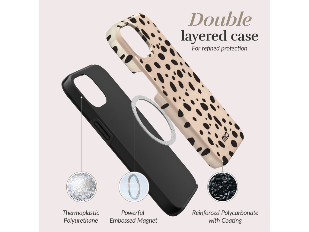Mio Cases zijn niet zomaar gewone hoesjes, ze zijn een fashion statement voor je telefoon! Bestaande uit twee delen, een flexibel TPU voor schokabsorptie en een stevige schil van polycarbonaat voor maximale bescherming, bieden deze MagSafe-compatible cases je smartphone de ultieme bescherming tegen vallen. Met Mio's dropprotectie én de toegevoegde functionaliteit van MagSafe kun je met een gerust hart je dag beleven, wetende dat je telefoon veilig is, hoe druk of wild het soms ook wordt.
