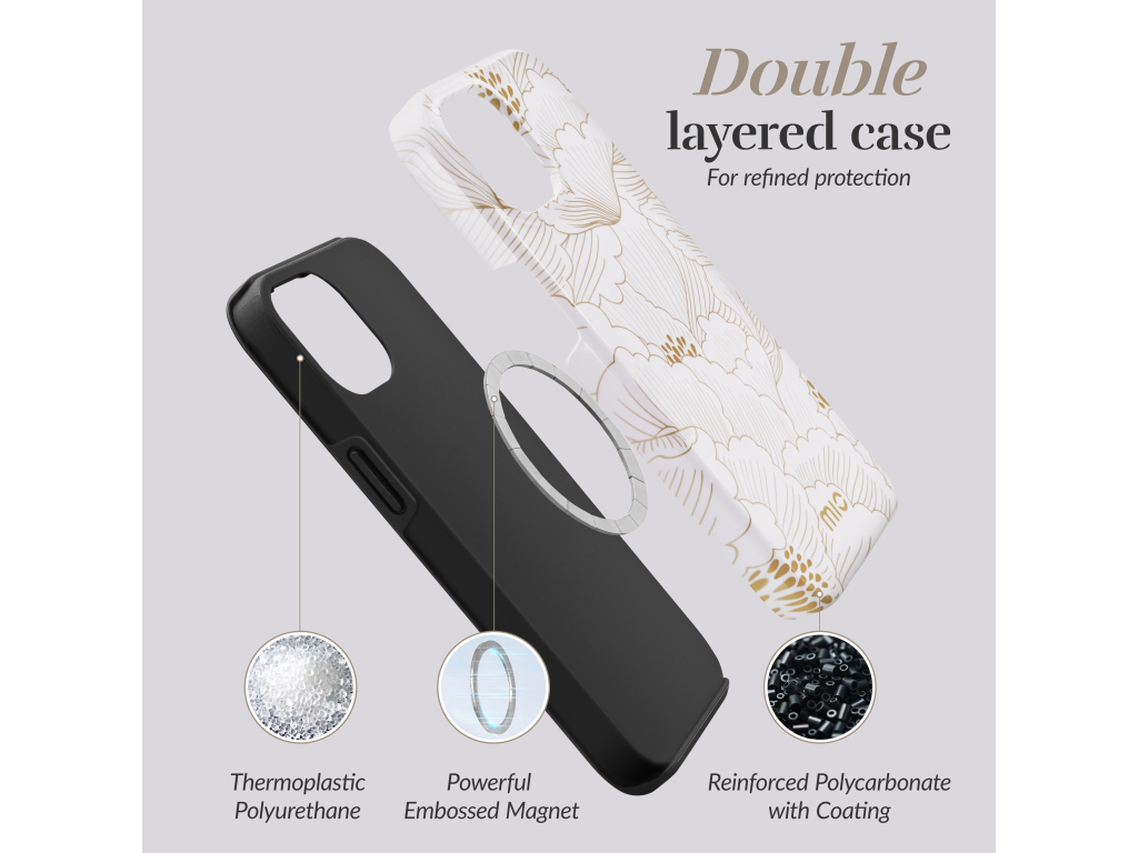 Mio Cases zijn niet zomaar gewone hoesjes, ze zijn een fashion statement voor je telefoon! Bestaande uit twee delen, een flexibel TPU voor schokabsorptie en een stevige schil van polycarbonaat voor maximale bescherming, bieden deze MagSafe-compatible cases je smartphone de ultieme bescherming tegen vallen. Met Mio's dropprotectie én de toegevoegde functionaliteit van MagSafe kun je met een gerust hart je dag beleven, wetende dat je telefoon veilig is, hoe druk of wild het soms ook wordt.