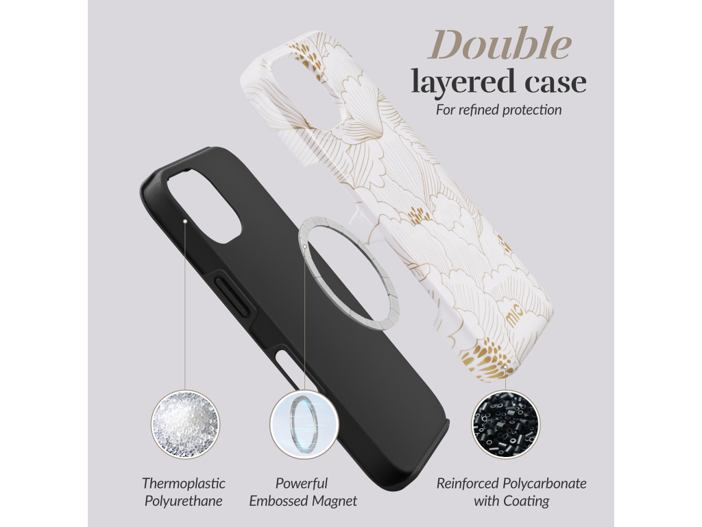 Mio Cases zijn niet zomaar gewone hoesjes, ze zijn een fashion statement voor je telefoon! Bestaande uit twee delen, een flexibel TPU voor schokabsorptie en een stevige schil van polycarbonaat voor maximale bescherming, bieden deze MagSafe-compatible cases je smartphone de ultieme bescherming tegen vallen. Met Mio's dropprotectie én de toegevoegde functionaliteit van MagSafe kun je met een gerust hart je dag beleven, wetende dat je telefoon veilig is, hoe druk of wild het soms ook wordt.