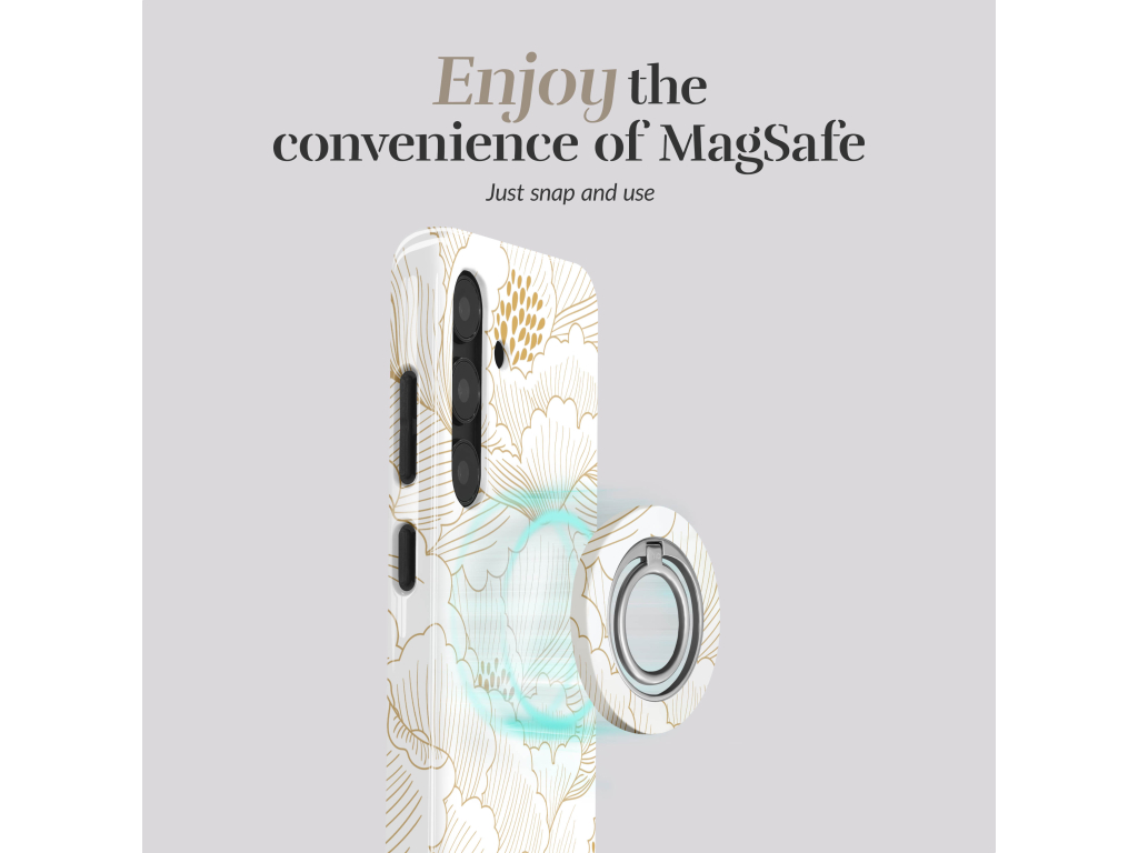 Met de krachtige MagSafe-compatibele magneten blijft de ringhouder stevig op zijn plek, zelfs bij intensief gebruik. Of je nu onderweg bent of thuis ontspant, je kunt erop vertrouwen dat je telefoon veilig bevestigd blijft.
