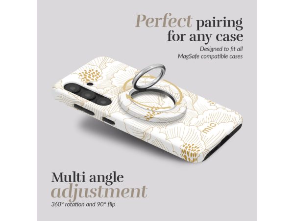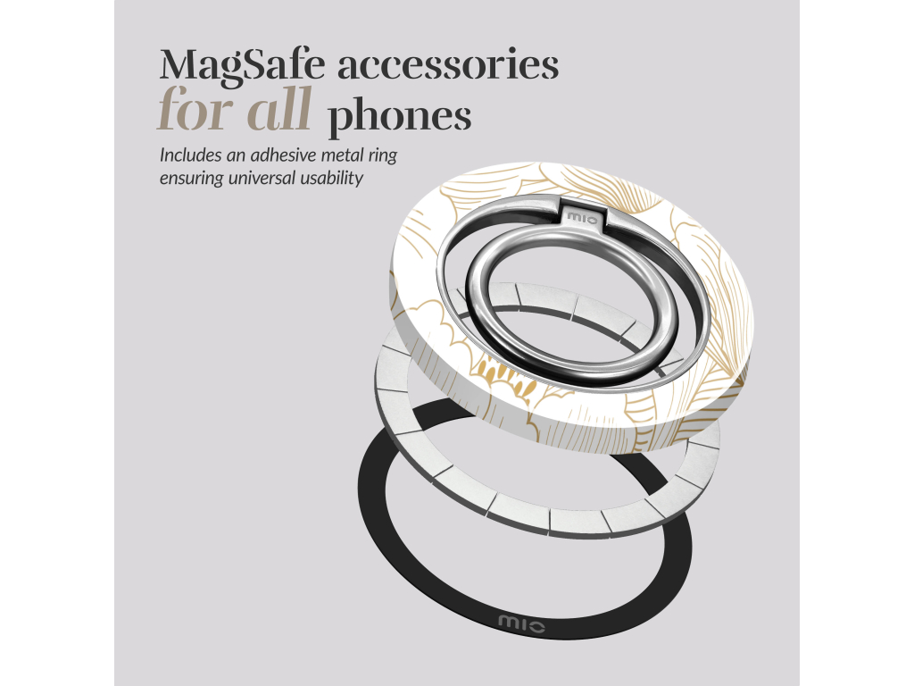 Met de MIO MagSafe Compatible Ring Holder geef je je telefoon niet alleen extra grip en functionaliteit, maar ook een stijlvolle touch die perfect bij je past. Maak van je smartphone een verlengstuk van je persoonlijke stijl met deze praktische en elegante accessoire! De ringhouder is ontworpen met dezelfde unieke patronen als de MIO-cases, waardoor je een naadloze stijl creëert die perfect aansluit bij je persoonlijke look.