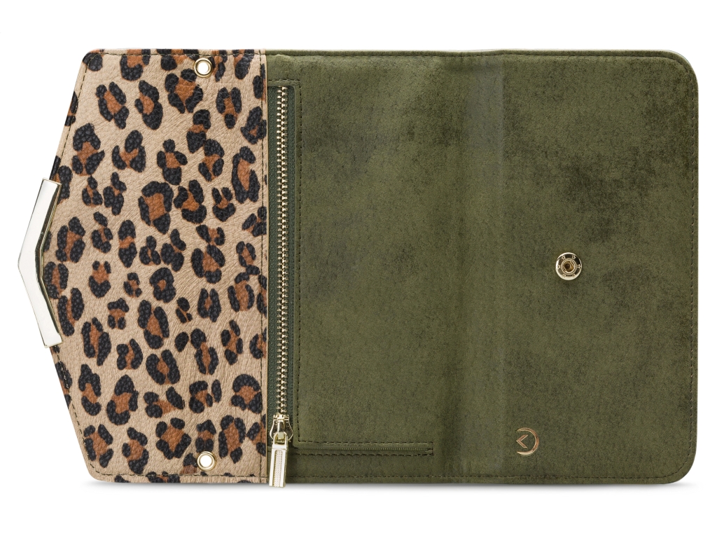 Het gebruik van de verschillende materialen en de hoge mate van afwerking maken de Clutch een unieke case. De combinatie van kleuren en materialen die u aan de buitenkant ziet zet zich aan de binnenkant door.  Ook de achterkant van de cover en de handige pols-strap zijn volledig in stijl.