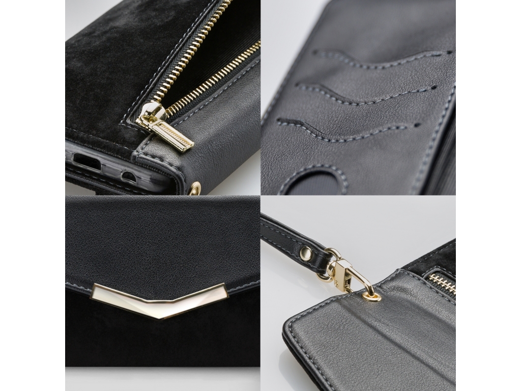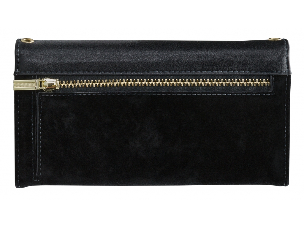 Het gebruik van de verschillende materialen en de hoge mate van afwerking maken de Clutch een unieke case. De buitenkant van de wallet is een combinatie van materiaal met een gedetailleerde slangenleren look en van materiaal met een zachte, luxe fluwele feel. Dit zet zich voort aan de binnenkant, de achterkant van de cover en de handige pols-strap, zodat alles goed bij elkaar past.