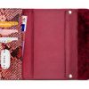 Het gebruik van de verschillende materialen en de hoge mate van afwerking maken de Clutch een unieke case. De buitenkant van de wallet is een combinatie van materiaal met een gedetailleerde slangenleren look en van materiaal met een zachte, luxe fluwele feel. Dit zet zich voort aan de binnenkant, de achterkant van de cover en de handige pols-strap, zodat alles goed bij elkaar past.