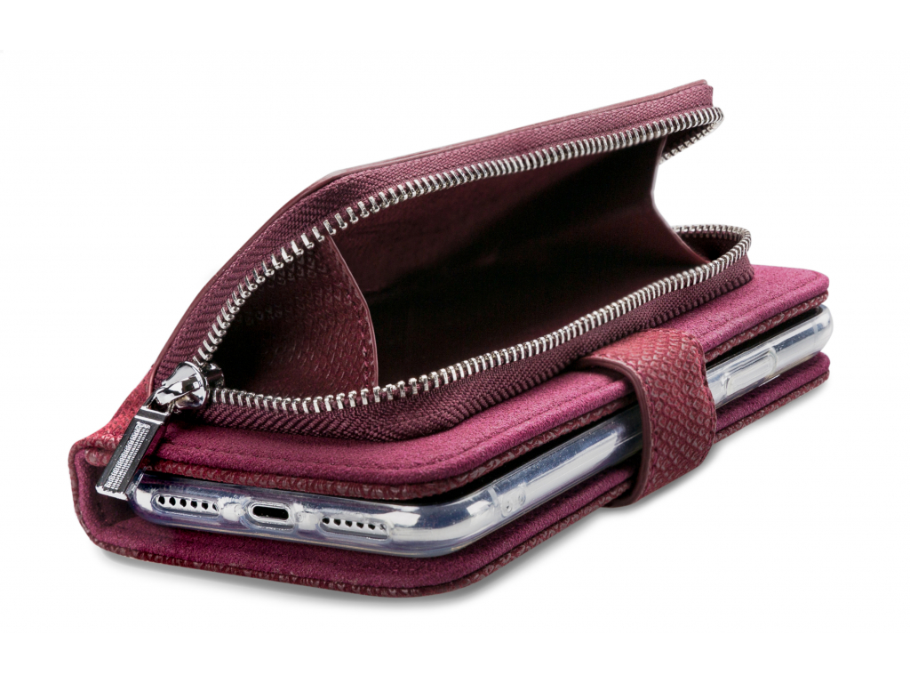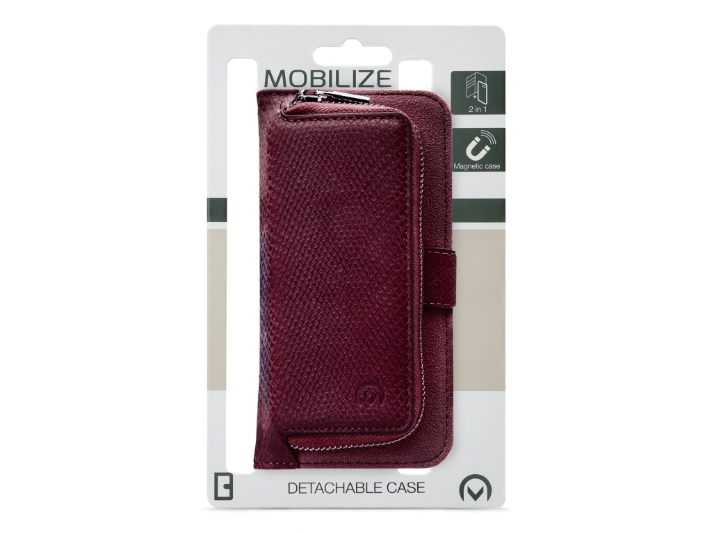 Met de luxueuze Mobilize 2in1 Gelly Wallet Zipper Case heeft u altijd al uw spullen bij elkaar voor een dagje winkelen of een avond uit.  Binnenin de case zitten drie vakjes voor uw ID kaart, bankpas of klantenkaarten. Eén van die vakjes heeft een handige slide functie om uw meest gebruikte pas nog makkelijker uit het vakje te krijgen. Er zit ook een groter vak voor papiergeld of andere papieren in. De voorkant van de modieuze Gelly Wallet Zipper Case is een mooi afgewerkte portemonnee met rits. Perfect voor uw sleutels en voor spullen die u én snel bij de hand én veilig opgeborgen wil hebben. Het elegante polsbandje, het subtiele lizard motiefje en de zilverkleurige sluitingen maken van deze case een echt fashion item.