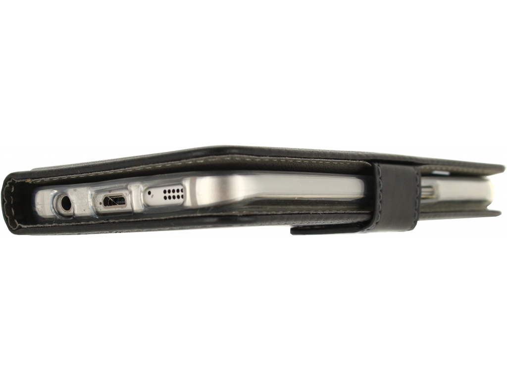 De vele uitsparingen in de Gelly zorgen er voor dat u alle knoppen en aansluitingen goed kunt blijven gebruiken. Het voordeel van een Gelly cover is dat deze door zijn flexibiliteit langer meegaat en niet breekt. De case in zijn geheel is mooi compact en u hem daarom gemakkelijk overal mee naar toe nemen. Aan de linker binnenkant van de case zitten twee horizontale vakken voor pasjes en één verticaal vak voor briefgeld.