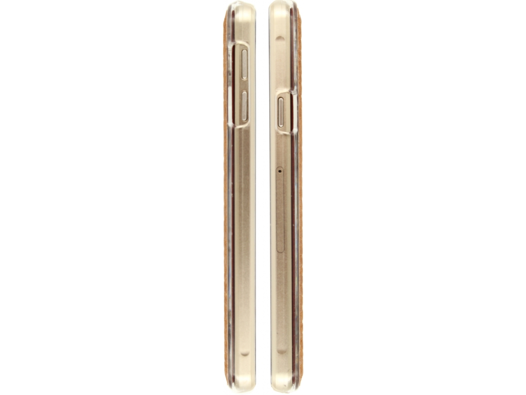 Deze bijzondere case heeft rondom kunstleder, wat zorgt voor een luxe uitstraling. Het magneetflapje zorgt ervoor dat deze goed gesloten blijft. Deze flap is mooi afgewerkt met een koperkleurig detail. Aan de binnenkant vindt u ruimte voor 2 pasjes, visitekaartjes of wat gevouwen briefgeld. Zo heeft u altijd het hoognodige bij de hand. Aan de andere binnenzijde is een transparante hardcover te vinden die uw telefoon beschermt tegen krassen, vallen en stoten. Natuurlijk is ook de bekende stand-functie ingebouwd, voor comfortabel handsfree gebruik.