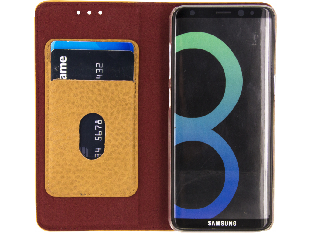 Deze bijzondere case heeft rondom kunstleder, wat zorgt voor een luxe uitstraling. Het magneetflapje zorgt ervoor dat deze goed gesloten blijft. Deze flap is mooi afgewerkt met een koperkleurig detail. Aan de binnenkant vindt u ruimte voor 2 pasjes, visitekaartjes of wat gevouwen briefgeld. Zo heeft u altijd het hoognodige bij de hand. Aan de andere binnenzijde is een transparante hardcover te vinden die uw telefoon beschermt tegen krassen, vallen en stoten. Natuurlijk is ook de bekende stand-functie ingebouwd, voor comfortabel handsfree gebruik.