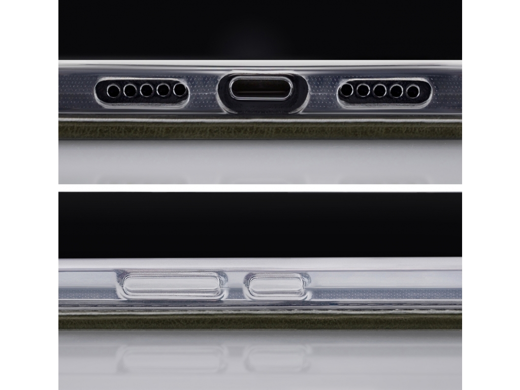 De vele uitsparingen in de Gelly cover zorgen er voor dat u alle knoppen en aansluitingen goed kunt blijven gebruiken. Het voordeel van een Gelly cover is dat deze door zijn flexibiliteit langer meegaat en niet breekt. De case in zijn geheel is mooi compact en u hem daarom gemakkelijk overal mee naar toe nemen. Aan de linker binnenkant van de case zitten drie horizontale vakken voor pasjes, visitekaartjes of briefgeld. De kleur evenals het materiaal voor de horizontale vakken zijn gelijk aan de kleur en het materiaal aan de buitenkant.