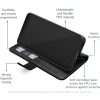 Uitsparingen in de Gelly cover zorgen ervoor dat je alle knoppen en connectoren goed kan blijven gebruiken. De opstaande randen van de cover beschermen het display van je toestel tegen eventuele beschadigingen na een val of stoot. Aan de linker binnenkant van de case zitten drie vakken voor pasjes. De vakken hebben een cut-out in de vorm van een "V" waardoor je pasjes makkelijker uit de case kan halen. Ook is er een lang verticaal vak aanwezig waar je briefgeld in kwijt kan. Kijk je ook veel vlogs of series op je toestel dan kan je de stand functie van de case gebruiken. Leg de case op een vlakke ondergrond en je hoeft het toestel niet meer vast te houden terwijl je kijkt.