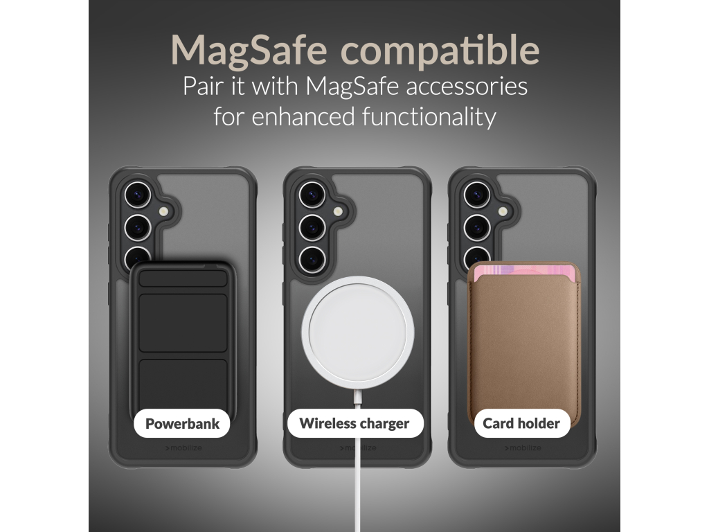 De Mobilize MagSafe Compatible Hybrid Case is de perfecte keuze voor wie zijn nieuwe smartphone wil beschermen. Deze case biedt geweldige bescherming met zijn hybride ontwerp, dat een harde polycarbonaat achterkant en flexibele TPU-bumper combineert. De case is compatible met de MagSafe-technologie waardoor je toegang hebt tot allerlei laad-, houder- of designoplossingen. Het hoesje heeft ook een anti-kraslaag die ervoor zorgt dat je telefoon er onberispelijk blijft uitzien.