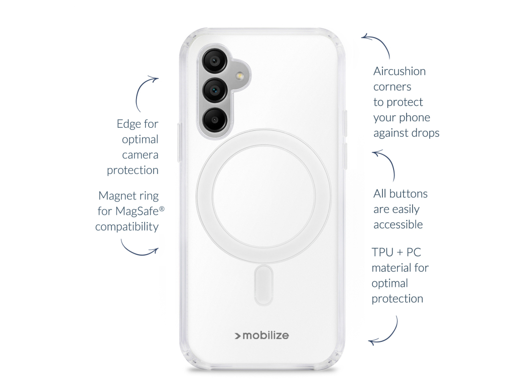 Bij de vernieuwde Mobilize Naked Protection Case komt het beste van een beschermende en Magsafe compatible case samen. De achterzijde van de case is van stevig kunststof wat jouw mobiel beschermt tegen krassen, maar zonder afbreuk te doen aan het design van jouw telefoon. De randen van de case zijn juist van flexibel materiaal. Zo kunnen vallen en stoten goed worden opgevangen en blijft jouw telefoon langer schadevrij. Het zorgt bovendien voor een betere grip zodat jij jouw mobiel minder snel laat vallen.
