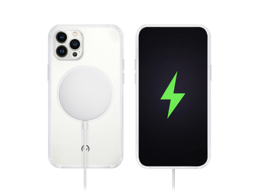 Aan de achterzijde van de case vind je extra magneten die perfect matchen met jouw smartphone. Deze magneten zorgen ervoor dat de originele en niet originele Magsafe compatible accessoires op de juiste plek worden vastgeklikt. Hierdoor weet jij zeker dat jouw toestel goed draadloos wordt opgeladen door jouw Magsafe-lader of goed vastzit aan jouw Magsafe compatible autohouder. Het voordeel van het draadloos laden met Magsafe is dat de laad/koptelefoon connector wordt ontlast en jouw smartphone hierdoor langer meegaat.