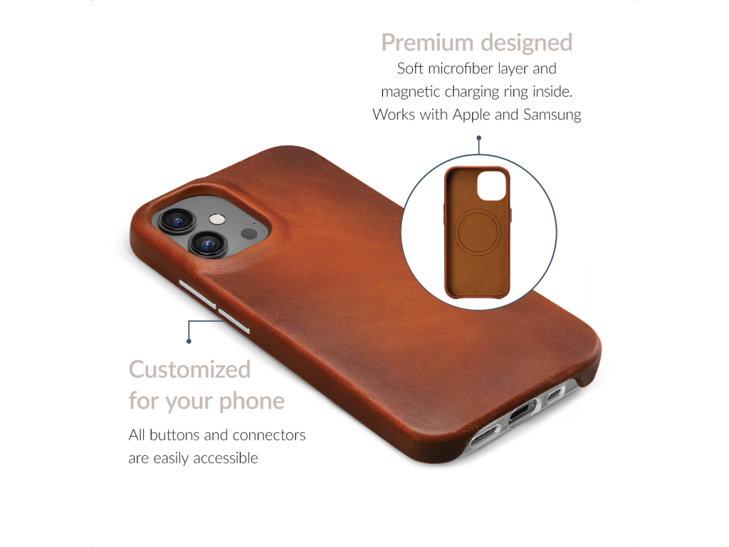 Deze case is gemaakt van hoogwaardig echt leer, wat een tijdloze en verfijnde uitstraling geeft. Het premium leer voelt zacht aan en biedt een comfortabele grip, terwijl het tegelijkertijd duurzaamheid en een langdurige kwaliteit garandeert.