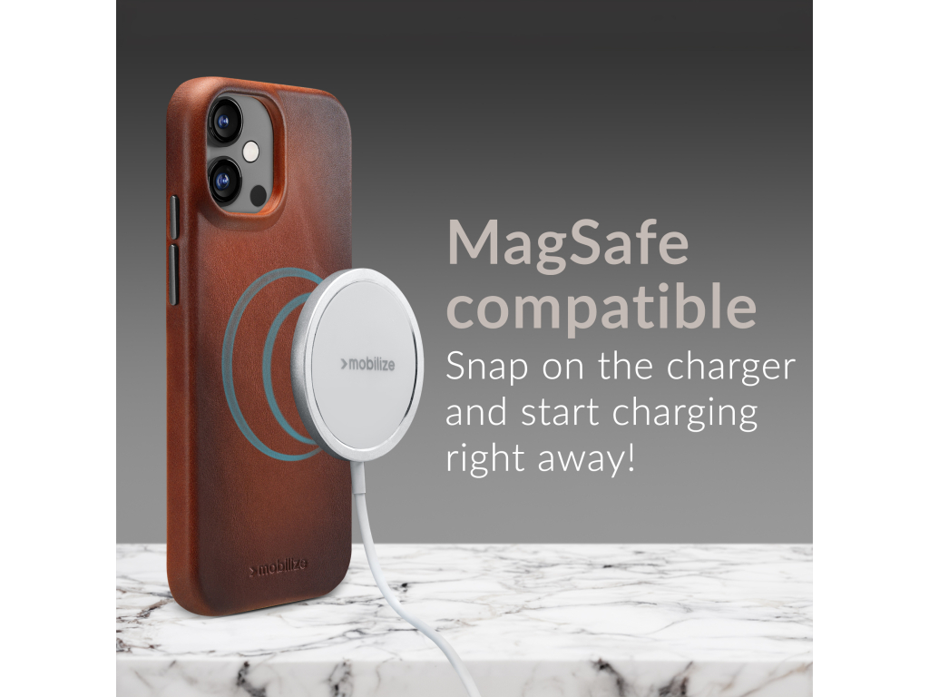 Met de Mobilize MagSafe Compatible Premium Leather Case combineer je luxe met praktische bescherming. Deze case is ideaal voor iedereen die zijn smartphone wil voorzien van een stijlvolle, kwalitatieve en functionele bescherming. De Mobilize MagSafe Compatible Premium Leather Case is een luxueuze en functionele keuze voor iedereen die zijn smartphone wil beschermen met een vleugje elegantie. Deze case, vervaardigd uit echt premium leer, is speciaal ontworpen voor gebruikers die waarde hechten aan zowel stijl als functionaliteit.