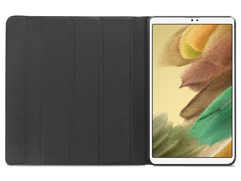 De buitenkant is gemaakt van hoogwaardig soft touch kunstleer en fraai afgewerkt. Het is gemakkelijk om de tablet in de case te bevestigen dankzij de zwarte TPU-case die rondom de gehele tablet loopt. De voordelen van een TPU-case ten opzichte van een polycarbonaat hardcover is dat de TPU-case niet kan breken, altijd mooi blijft en door de zwarte kleur niet zal verkleuren. Uiteraard is er rekening gehouden met de belangrijke uitsparingen waardoor de case het gebruik van de tablet niet belemmerd.