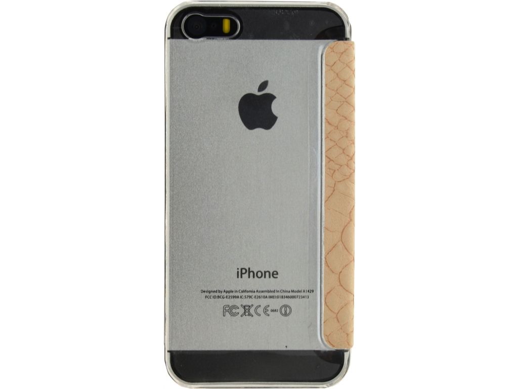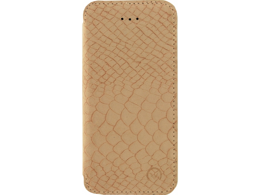 Met de Slim Booklet serie heeft u wel een heel bijzondere case in handen. Dit product is namelijk een combinatie van een zachte Gelly en een book case. De flap aan de voorkant is gemaakt van kunstleer en voorzien van een slangenleerprint. Het materiaal voelt prettig aan en is zacht als suède. Er is een uitsparing gemaakt voor de speaker. Aan de binnenkant zit microvezel, wat bijdraagt om uw beeldscherm vlek- en krasvrij te houden. Er is hier ruimte voor een pasje, visitekaartje of briefgeld. De flap is vastgemaakt aan een transparante softcase. Zo zijn ook de achterkant en hoeken van uw telefoon beschermd tegen schade, maar dan op een minimalistische manier. Het originele design van telefoon blijft nog goed zichtbaar. Hierdoor is de case veel subtieler dan een gewone book case, maar biedt het wel dezelfde voordelen.