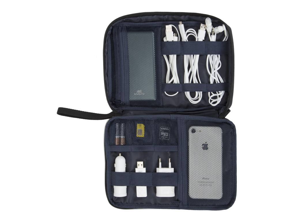 De Rivacase Travel Organizer is een compacte case om verrassend veel accessoires mee te kunnen nemen. Ideaal voor onderweg of op reis. Naast laders, kabels, geheugenkaartjes, stekkers en USB-sticks, kunt u ook uw smartphone en bijvoorbeeld een powerbank meenemen. Zo heeft u onderweg altijd alles bij de hand.