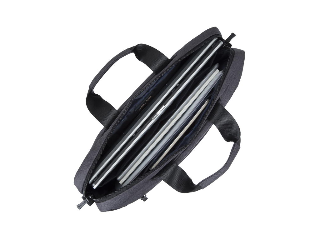 De schoudertas voor uw laptop van Rivacase is een gemakkelijk mee te nemen en draagbare tas. De tas is niet alleen stijlvol vormgegeven maar beschermd ook uitstekend tegen water, stoten, krassen en vuil. In de tas kunt u met gemak een laptop tot 15,6” meenemen, maar ook een tablet (tot 10,1”) en uw favoriete accessoires. Hoewel de tas al compact is, kunt u de handvatten naar binnen vouwen om hem nog compacter te maken. De handige schouderriem zorgt ervoor dat u met volle vertrouwen uw waardevolle spullen mee durft te nemen.