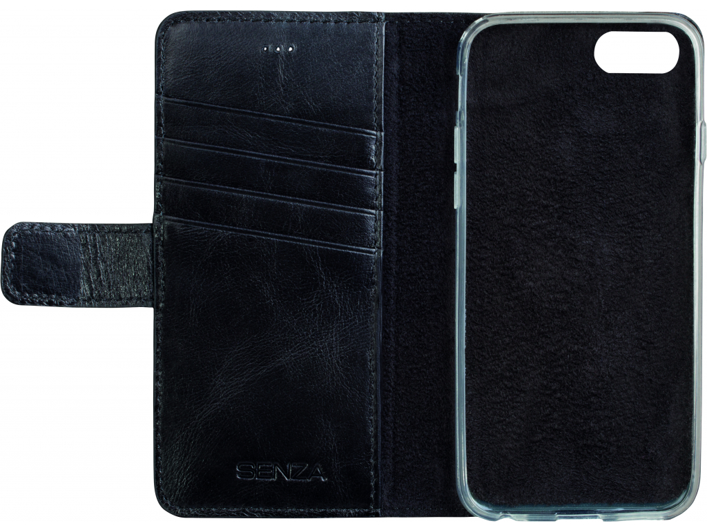 Met deze prachtige case van Senza komt u goed voor de dag. De echt leren case heeft een luxe uitstraling en een mooi design. Aan de binnenzijde van deze wallet case vindt u een transparante softcover. Daardoor is uw telefoon rondom beschermd tegen mogelijke schade. Het microvezel voelt zacht aan en houdt uw telefoon stevig in de case. Daarnaast is er aan de aan de linker binnenkant ruimte voor 4 pasjes of visitekaartjes. Ook is er een speciaal vakje voor papiergeld. De case sluit met een stevige magneet, die mooi is weggewerkt in een flapje dat naar achteren sluit. Met een gesloten case blijven alle poorten beschikbaar door de handige uitsparingen. Zelfs bellen is mogelijk, door de gaatjes die voor de speaker zijn gemaakt.