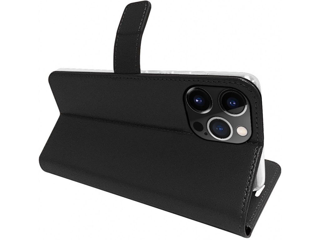 Deze zwart leren Book Case voor de Apple iPhone 13 Pro is de ideale combinatie van een stijlvolle telefoonhoes en een portemonnee. Dit telefoonhoesje is handgemaakt om een perfecte pasvorm en optimale bescherming te garanderen en tevens de levensduur van je Apple te verlengen.