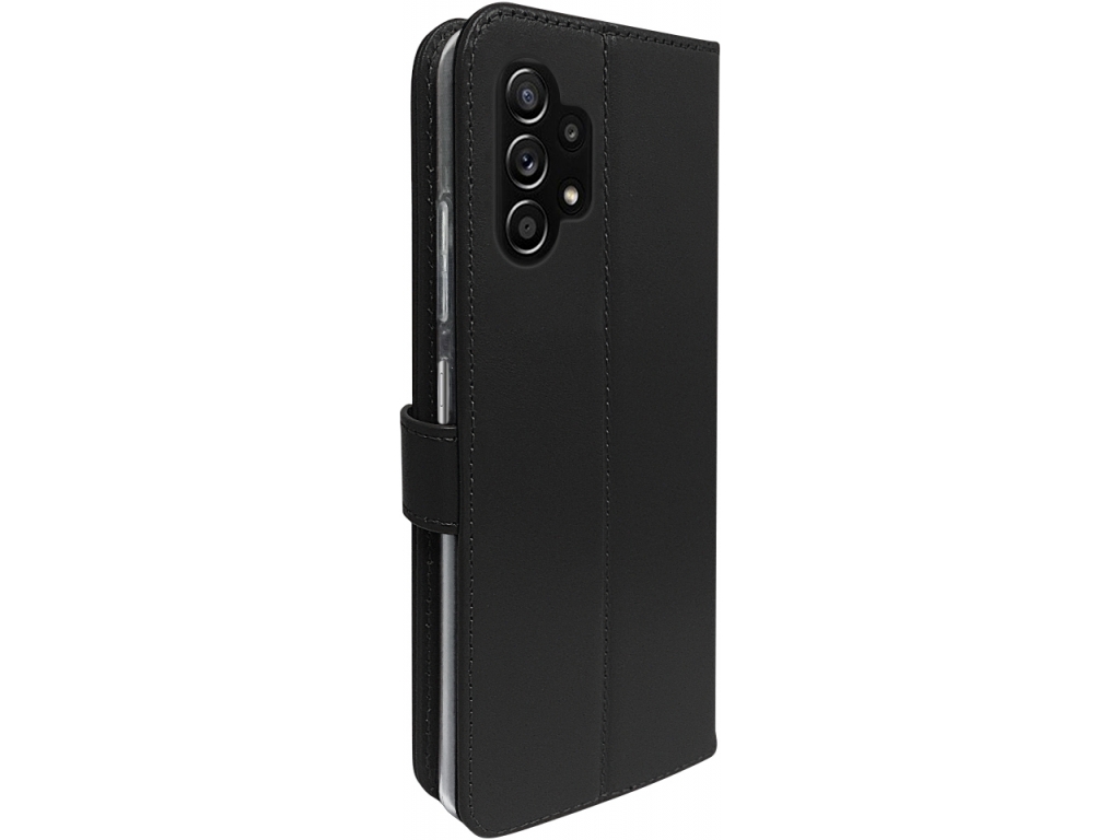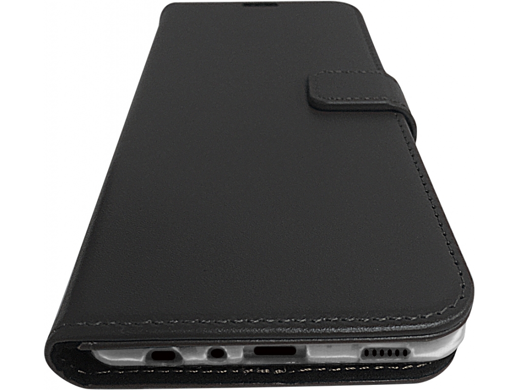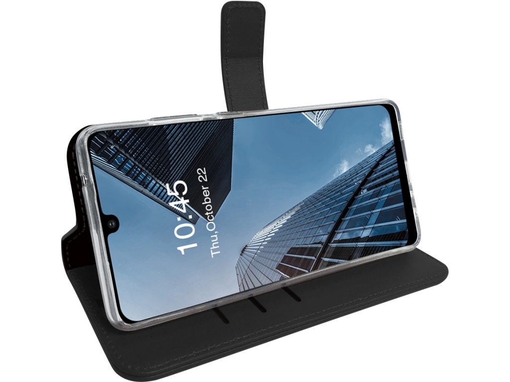 Deze zwart leren Book Case voor de Samsung Galaxy A32 5G is de ideale combinatie van een stijlvolle telefoonhoes en een portemonnee. Dit telefoonhoesje is handgemaakt om een perfecte pasvorm en optimale bescherming te garanderen en tevens de levensduur van je Samsung Galaxy A32 5G te verlengen.