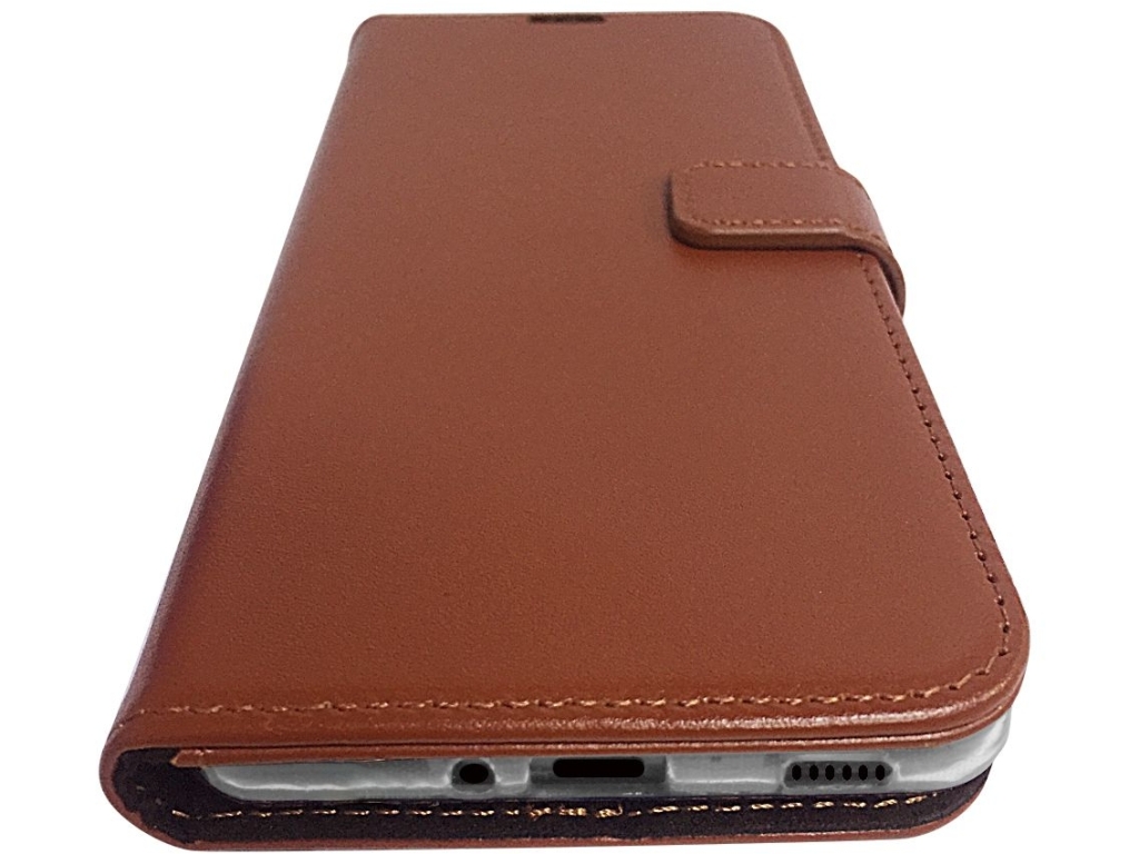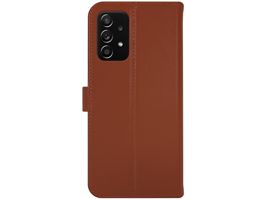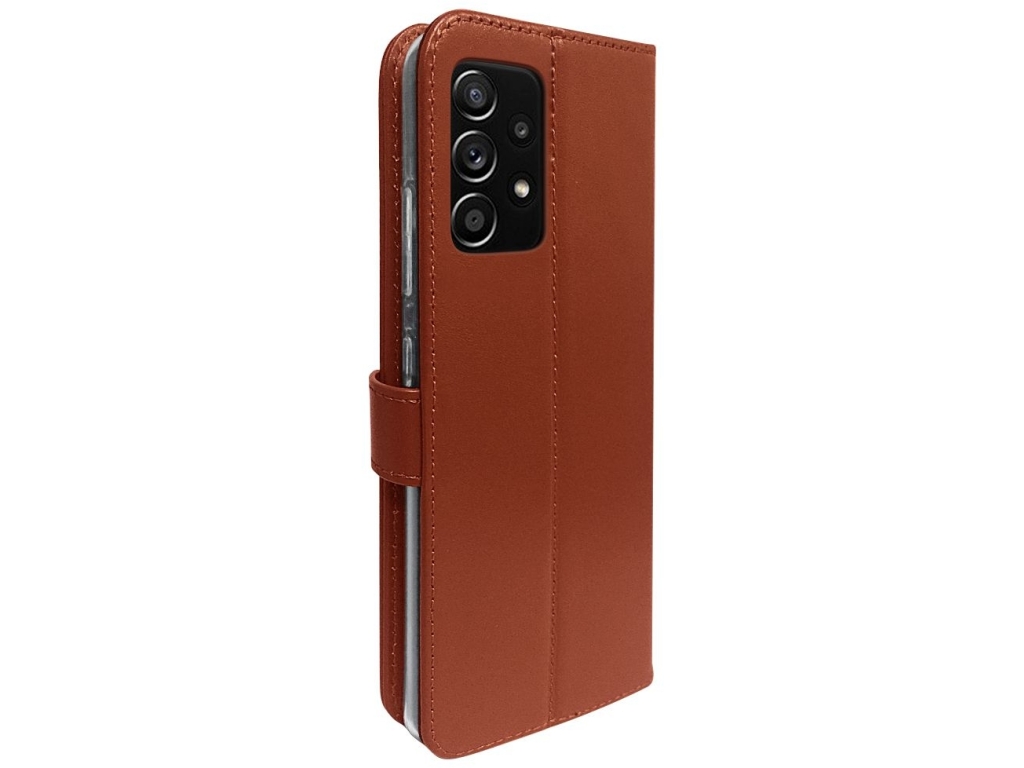 Deze bruin leren Book Case voor de Samsung Galaxy A33 5G is de ideale combinatie van een stijlvolle telefoonhoes en een portemonnee. Dit telefoonhoesje is handgemaakt om een perfecte pasvorm en optimale bescherming te garanderen en tevens de levensduur van je Samsung te verlengen.