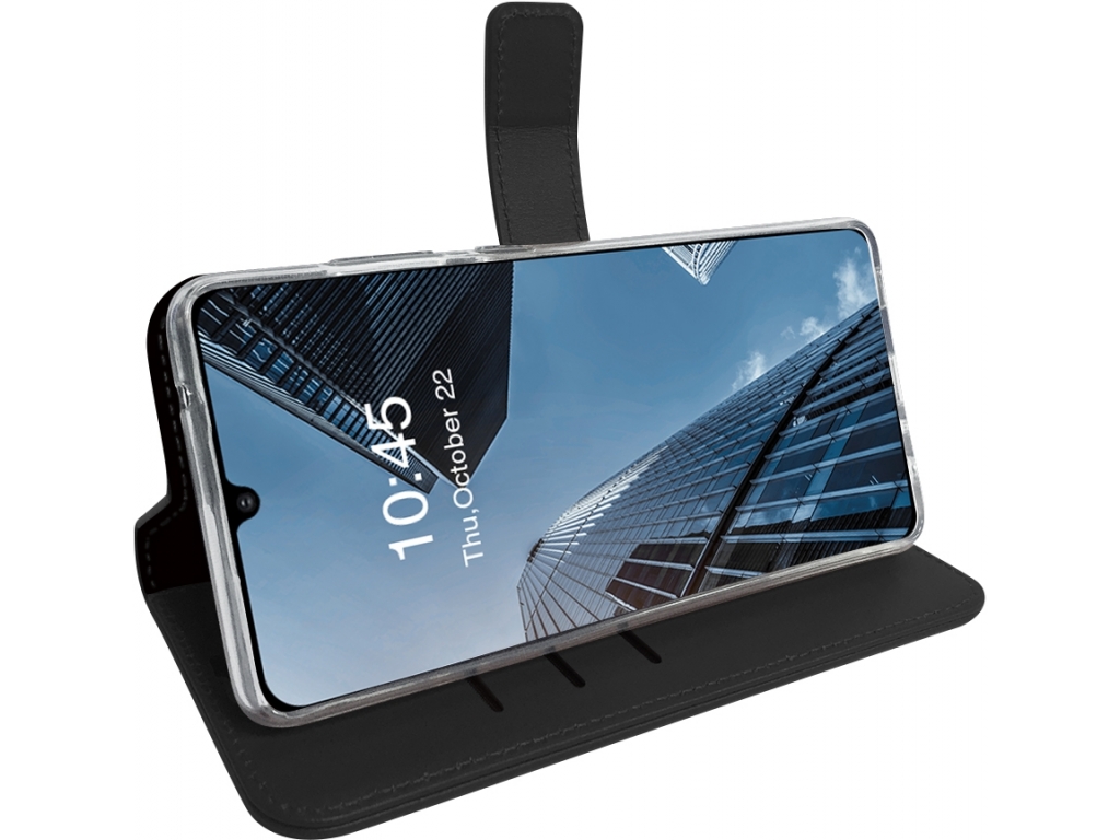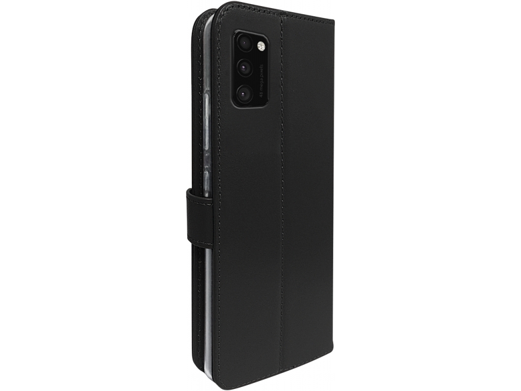 Deze zwart leren Book Case voor de Samsung Galaxy A41 is de ideale combinatie van een stijlvolle telefoonhoes en een portemonnee. Dit telefoonhoesje is handgemaakt om een perfecte pasvorm en optimale bescherming te garanderen en tevens de levensduur van je Samsung Galaxy A41 te verlengen.