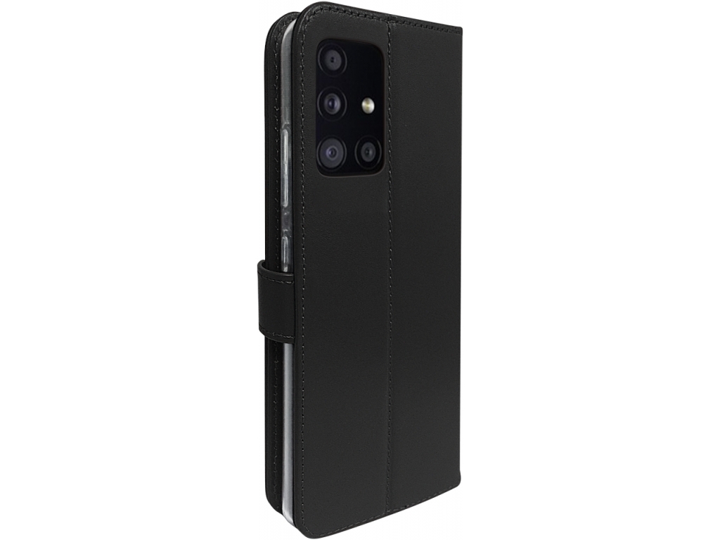 Deze zwart leren Book Case voor de Samsung Galaxy A51 is de ideale combinatie van een stijlvolle telefoonhoes en een portemonnee. Dit telefoonhoesje is handgemaakt om een perfecte pasvorm en optimale bescherming te garanderen en tevens de levensduur van je Samsung Galaxy A51 te verlengen.