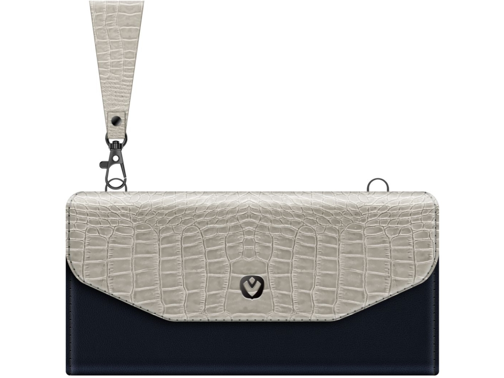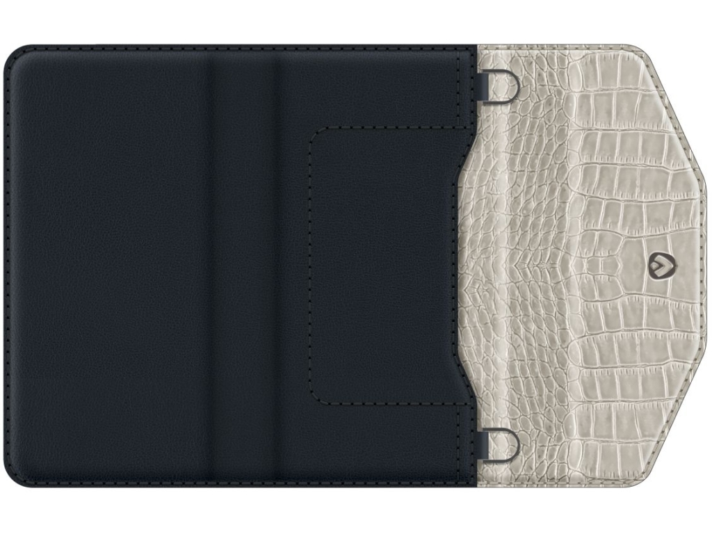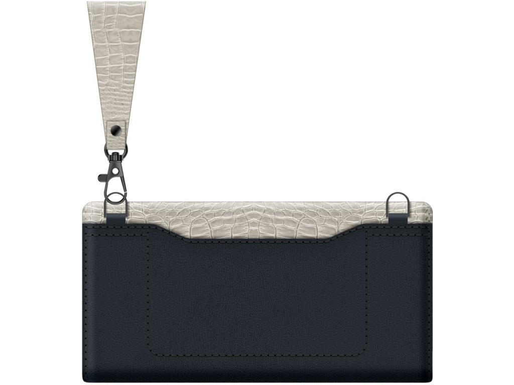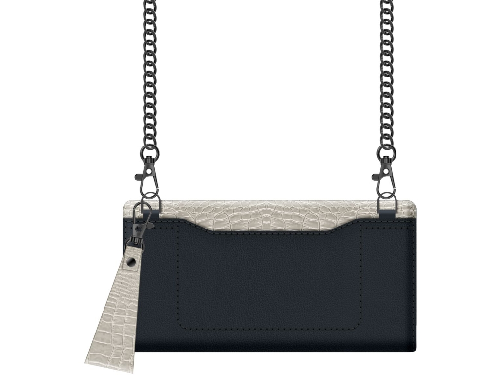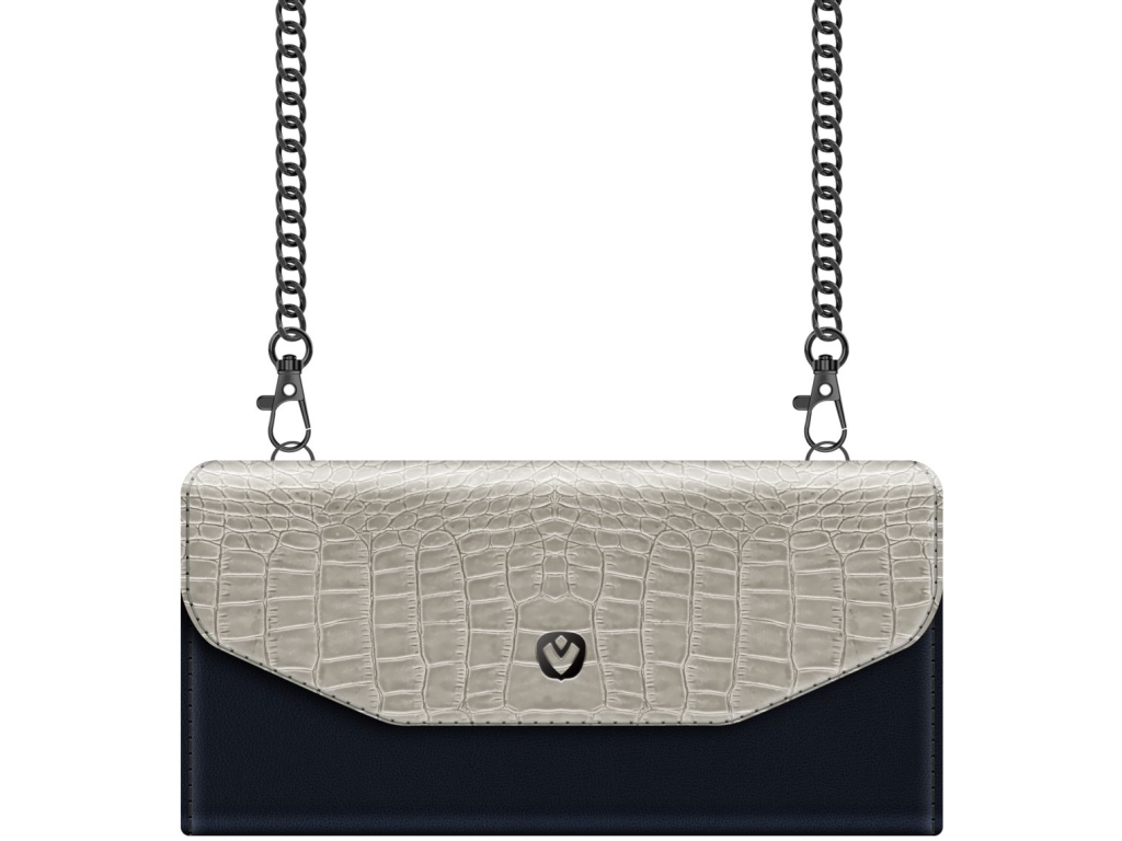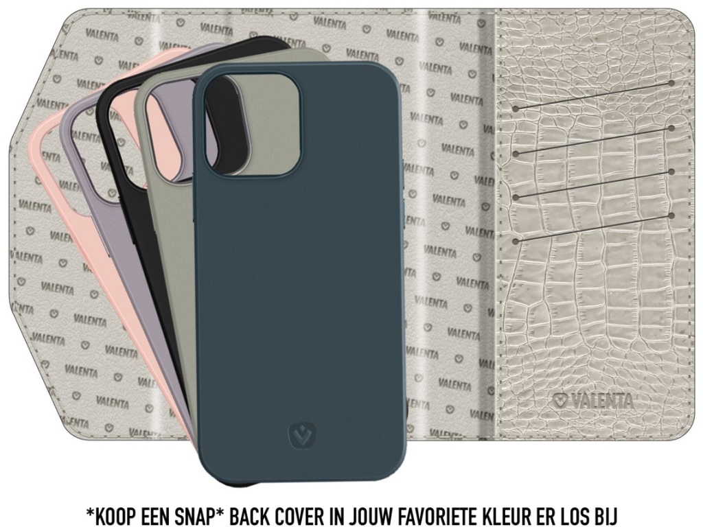 Uit de SNAP*series van Valenta is deze Universele magnetische Clutch Croco, oftewel een Universele Clutch Cover Omslag, een eigentijdse telefoonomslag speciaal gemaakt om te combineren met een Back Cover SNAP*. De SNAP* Back Cover bestel je er los bij dus je kunt mix & match-en met elke kleur die jij wilt. Deze universele magnetische clutch omslag is verkrijgbaar in 2 maten; Medium & Large, waardoor deze voor meerdere modellen & merken telefoons gebruikt kan worden uit de SNAP*collectie. Deze telefoonhoes heeft geen camera opening, waardoor de cameralens beter beschermt blijft tegen krassen en stof. Deze luxe zwart grijze croco book case omslag is vervaardigd uit PU-materiaal. De zwarte buitenkant wordt gecombineerd met een brede grijze croco sluiting. Aan de binnenkant zijn tevens vier kaartsleuven gemaakt in dezelfde croco grijze kleur. Er is een groot vak voor papiergeld en een magneetsluiting aan de voorkant om de SNAP* Clutch helemaal af te sluiten. Op de achterkant is er ruimte voor een extra pasje. De back cover Snap wordt magnetisch gehecht op een grijze velours binnenkant. De luxe Clutch is tot in de kleinste details afgewerkt, zodat het perfect past binnen het Mix & Match concept van de Valenta SNAP*series. De Clutch wordt geleverd met een cross body ketting en een vinger/handstrap.