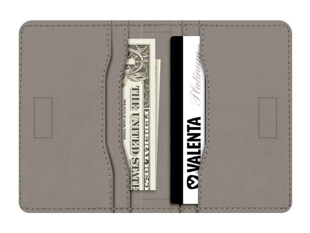 Uit de SNAP*serie is de Valenta Mini Card Wallet Snap een dunne leren magnetische kaarthouder. In deze fraaie dubbele kaarthouder is ruimte voor totaal 5 kaarten. Waarvan de 4 pasjes in de houder tegen skimmen en ongewenste RFID-communicatie beschermt zijn. Door de SNAP* technologie, die onzichtbaar verwerkt is in de Wallet, SNAP*t of klikt hij perfect op een Valenta Back Cover Snap. Doordat de Card Wallet opengeklapt kan worden, kan deze als handige videostand gebruikt worden. De veelzijdige magnetische Card Wallet Snap kan uiteraard ook als losse kaarthouder of standalone pasjeshouder worden gebruikt. Verkrijgbaar in alle 5 modieuze kleuren vanuit de SNAP*serie. Wij bieden ook personalisatie aan d.m.v. het bedrukken van intitalen of naam in folie letters op je magnetische kaarthouder. Maak jouw SNAP* Mini Card Wallet extra persoonlijk door je eigen stijl te creëren!