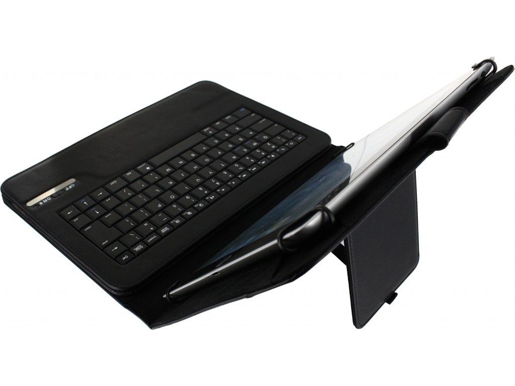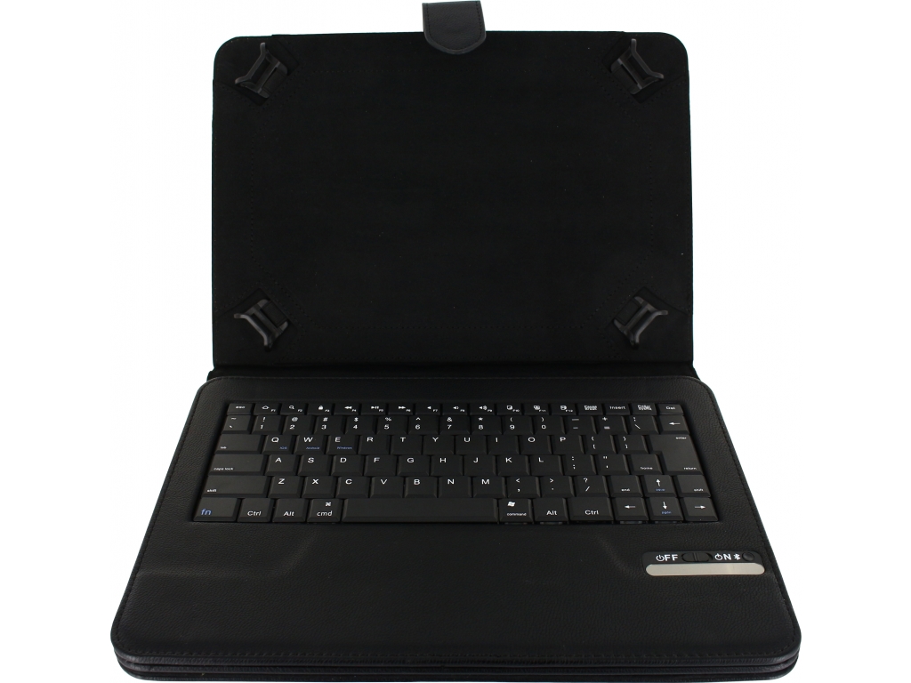 De Xccess Detachable Bluetooth Keyboard is een universele keyboard case voor uw tablet. De buitenkant van de case en het keyboard gedeelte zijn gemaakt van PU leder terwijl de binnenkant van de case voorzien is van zacht stof. Aan de rechterbinnenkant van de case zitten 4 haakjes waarachter u uw tablet kunt bevestigen. Deze haakjes zijn voorzien van een elastiek zodat de case geschikt is voor verschillende tablets. Het bluetooth keyboard is uitneembaar en door middel van sterke magneten te bevestigen in de case. Verder is hij voorzien van een stand functie. Mocht u deze even niet willen gebruiken sluit hij stevig aan op de case door een magneet. Het geheel sluit af met een flapje die eenvoudig in een houdertje te schuiven is.