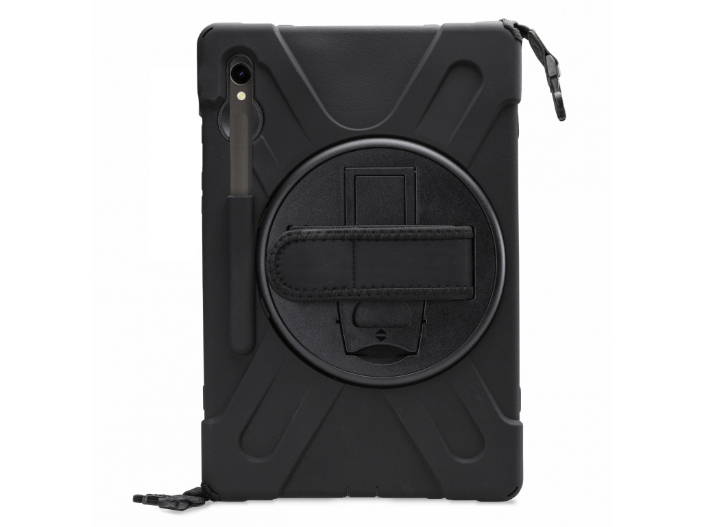 Met de Xccess Survivor All-round Case bent u van alle gemakken voorzien. De case is gemaakt uit een basis van hard plastic, met een rubberen afwerking. Zo vangt de case eventuele klappen en stoten op als de tablet per ongeluk valt. Gelukkig zal dit niet snel gebeuren, dankzij de Hand Strap op de achterzijde. Deze strap zorgt ervoor dat u de tablet goed vast kunt houden. Middels het klittenband is de strap goed strak te trekken om elke hand. Deze strap bevindt zich op een 360° draaibare schijf, zodat u de tablet in zowel landscape als portrait stand wilt gebruiken. Daarnaast kunt u de tablet als schoudertas dragen dankzij het bijgeleverde koord. Achter de Hand Strap is bovendien nog een handige standaard te vinden, zodat u comfortabel naar video's kunt kijken.