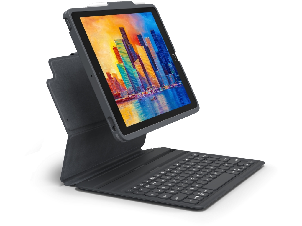 Jouw tablet is in 2 verschillende posities te zetten wanneer je gebruik maakt van het toetsenbord. De case waar je tablet in zit is los te koppelen van het toetsenbord waardoor je de tablet ook op andere manieren kan gebruiken. Ben je ook nog in het bezit van een Apple Pencil, dan kan je deze ook kwijt in deze case in de speciaal daarvoor gemaakte uitsparing.