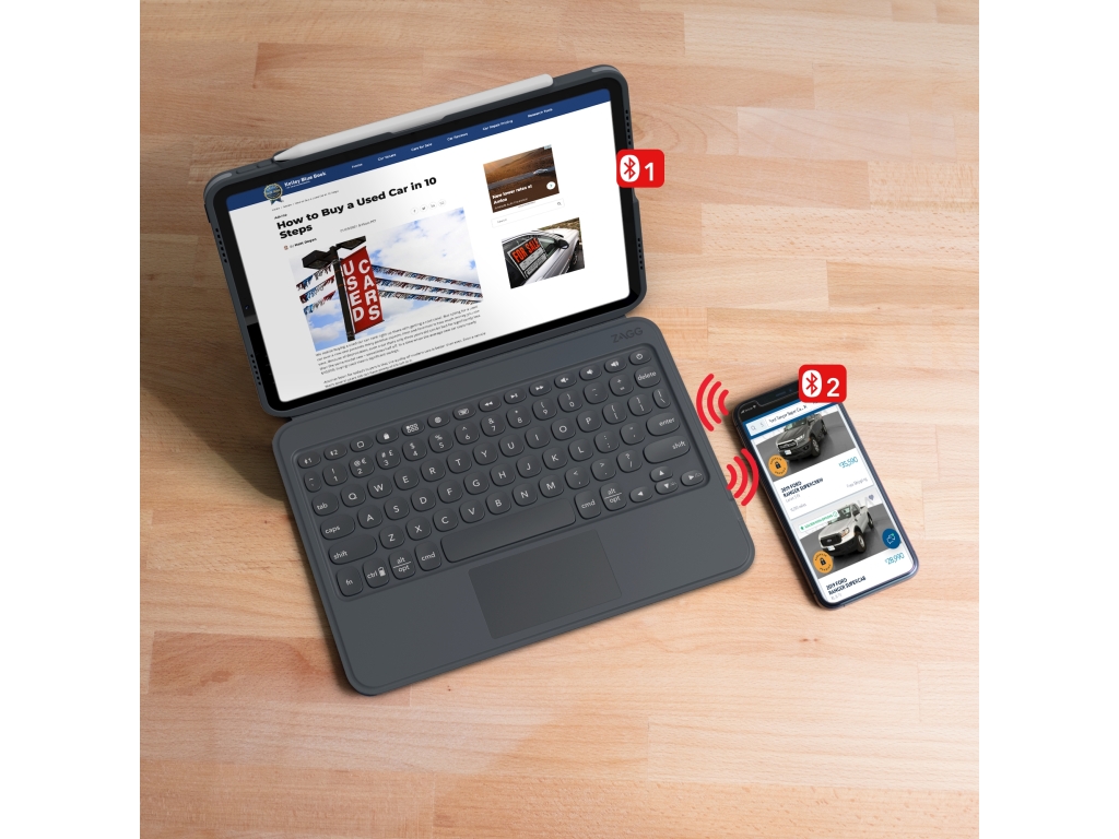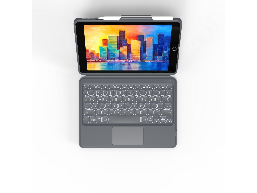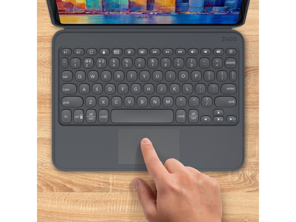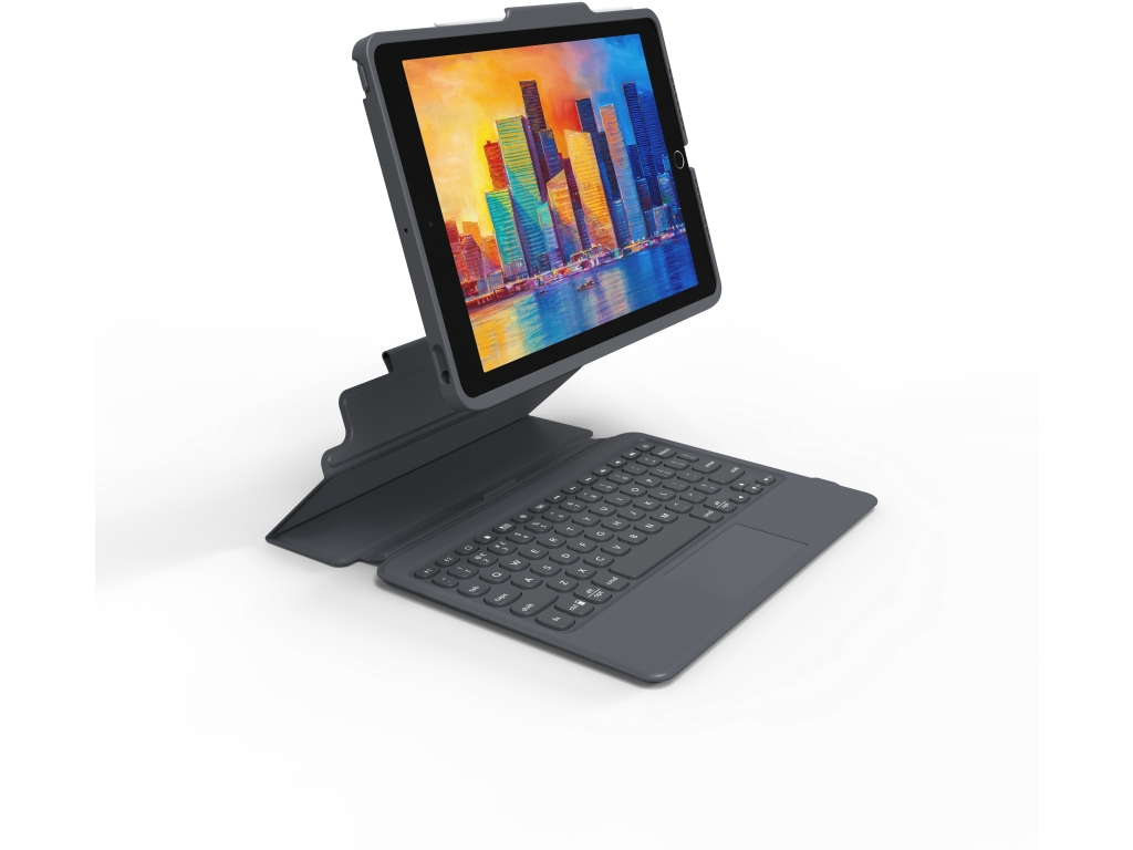 De ZAGG Pro Keys Bluetooth Keyboard case met trackpad verhoogd jouw productiviteit. De normale Pro Keys Bluetooth Keyboard was al een complete case, maar de toevoeging van een trackpad zorgt ervoor dat je nog makkelijker kunt swipen, scrollen en browsen, waardoor je nog productiever bent. De case beschikt over een verlicht Bluetooth keyboard met QWERTY-layout en trackpad waarmee jij al je documenten kunt typen, ook in het donker! Het is mogelijk om een tweede apparaat tegelijkertijd te koppelen aan het toetsenbord. Zo kan je bijvoorbeeld je telefoon een andere laptop of desktop koppelen en bedienen.