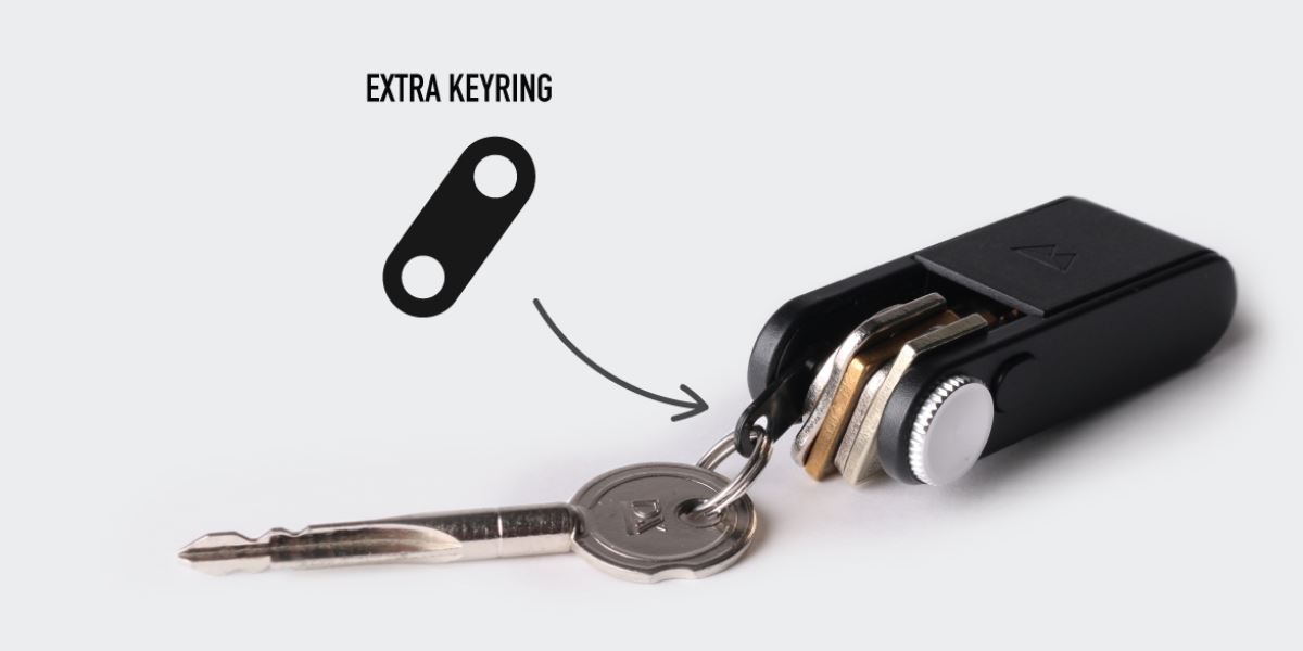 - Er kan een autosleutel aan de extra key ring (zie de afbeelding)
