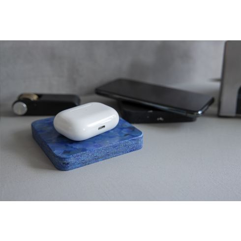 Deze draadloze 10W telefoonoplader is gemaakt van oude blauwe printer spoelen. Het plastic wordt schoongemaakt, versnipperd en dan tot platen gegoten en geperst. Uit deze platen worden de docks gefreesd. Elk product heeft zijn eigen unieke patroon. Inclusief micro-USB oplaadkabel en USB-C connector.